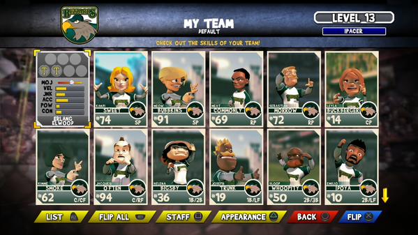 Season mode illustrates EGO’s impact on player performance since each of the eight teams specializes in different areas. Teams excel in defence, pitching or power hitting, and EGO amplifies their weakness. To improve weaknesses, contracts to hire coaches, trainers and stylists alter player statistics. Some staff members improve power, fielding or pitching. Other upgrades improve statics more, but at the cost of other stats, such as decreased Mojo for example. Super Mega Baseball’s standard season, exhibition mode and local multiplayer offer few options. The lack of online multiplayer however, stands out as the obvious missing feature. The lack of online multiplayer bothers me even more than the visual aesthetic.